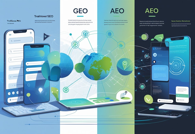These three methods overlap but serve different goals. SEO drives traffic, GEO ensures inclusion in AI-generated narratives, and AEO builds trust through authoritative responses. Together, they form the future of search where visibility depends on both human readers and machine comprehension.